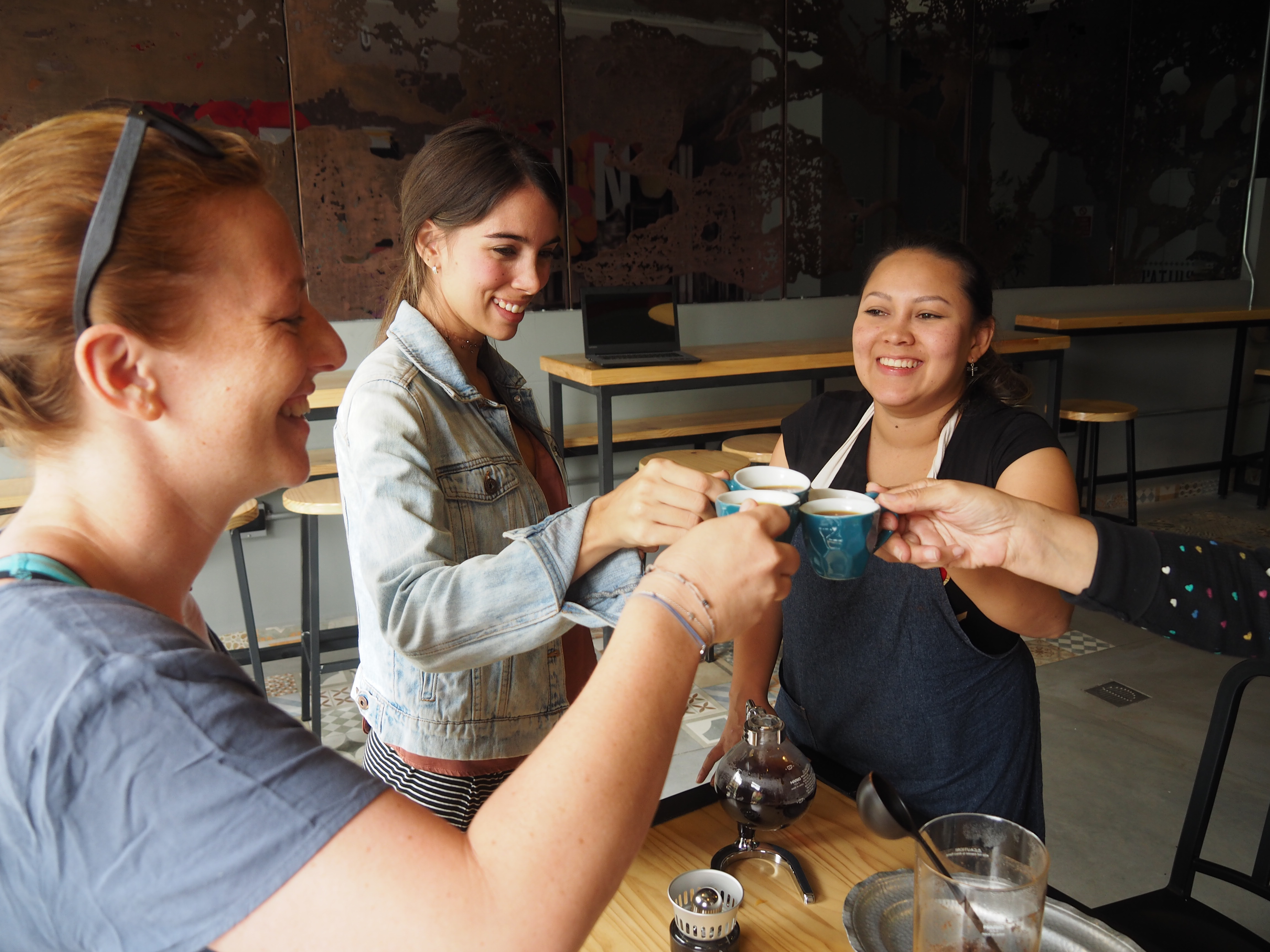 Nach zwei Tagen verließen wir die Karibik endgültig und machten uns auf in die Berge, wo wir nach vielen Serpentinen im kleinen Bergdörfchen Minca landeten. Schnell war ein kleines Hostel bezogen, das direkt am Fluss lag und mit Babykatzen punkten konnte. Am Abend wartete für Kathi abermals ein schönes Wiedersehen mit einer Freundin, die sie auf Reisen kennengelernt hatte: Helen und ihr Freund Thomas waren zur Zeit ebenfalls in Kolumbien unterwegs. Beim gemütlichen Abendessen tauschten wir (Reise-)geschichten aus und genossen die entspannte Atmosphäre in Minca.